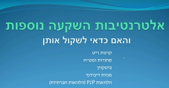 קורס להורים לילדים, כ-4.5 שעות בהנחיית ד"ר עידית רז-קלישר ורונן מרגוליס. הקורס מיועד להורים המעוניינים ללמד את ילדיהם חשיבה כלכלית בריאה, ניהול משאבים, סדרי עדיפויות, חיסכון, השקעה ודחיית סיפוקים, וכן מעוניינים לחסוך ולהשקיע ביעילות וברווחיות לילדיהם, תוך חיסכון של עשרות אלפי שקלים במס רווחי הון ובדמי ניהול.